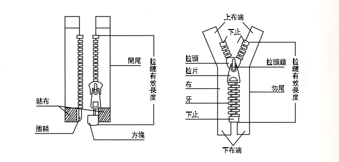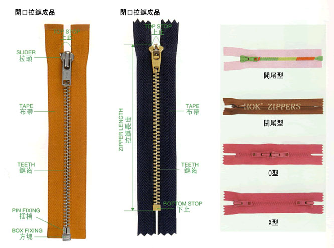 拉鏈可分為三個主要部份 : 布帶,牙齒和拉頭。