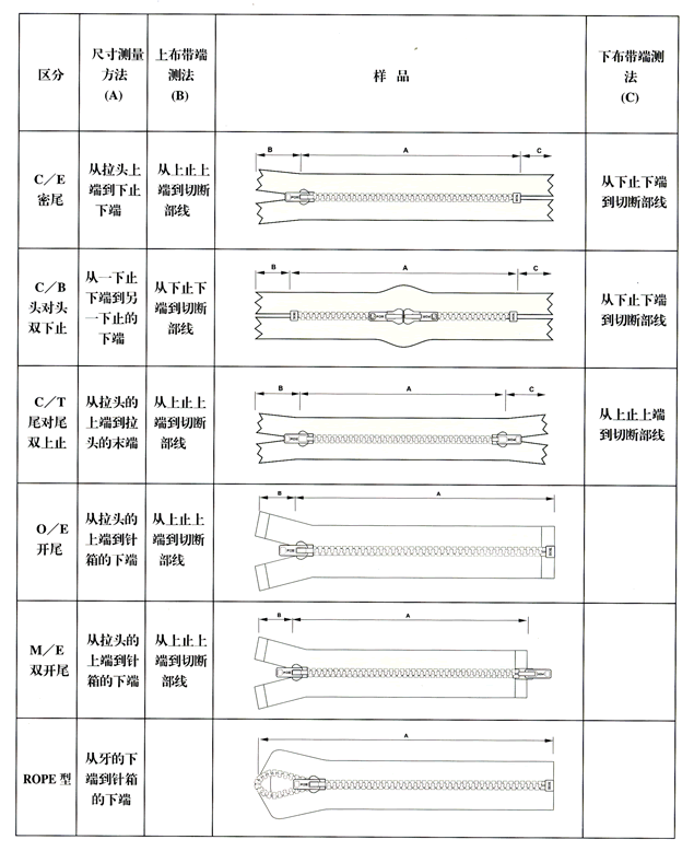 拉链长度及测量的标准(长度A)