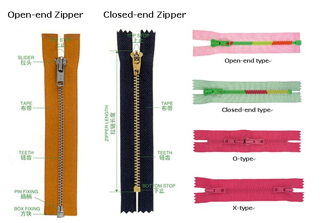 The structure of the zipperThe zipper can be divided into three main parts: the tape,elements and slider.